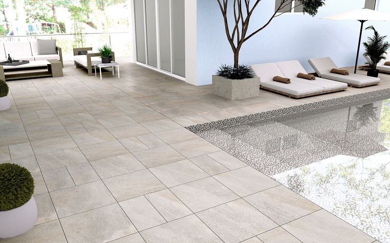 Những sản phẩm gạch lát cho khu vực này phải có độ hút nước thấp, dưới 0,5% để hạn chế được tối đa tình trạng ẩm gạch. Gạch porcelain là dòng gạch thích hợp nhất cho những khu vực ngoài trời. Với độ hút nước thấp cùng độ cứng hoàn hảo, gạch porcelain sẽ là lựa chọn lý tưởng