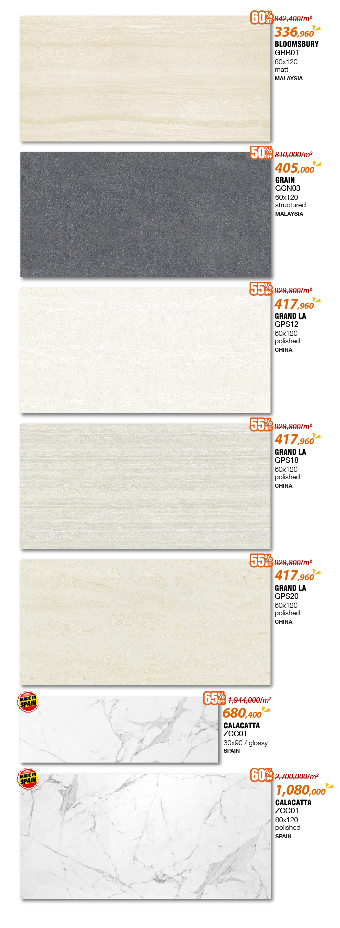 Chương trình mang đến ngàn mẫu gạch xịn nhập khẩu từ Malaysia, Indonesia và Tây Ban Nha .